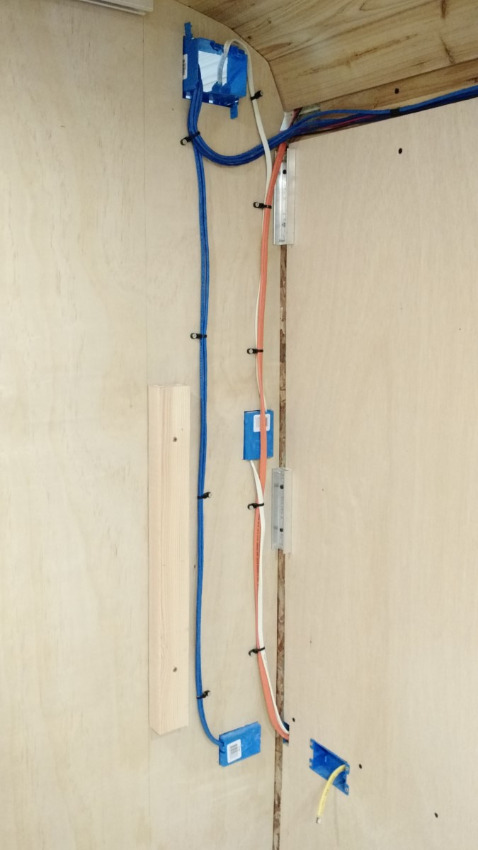 All 110v AC (14, 12 and 10 AWG) wires had to run to where the breaker panels would eventually be mounted.