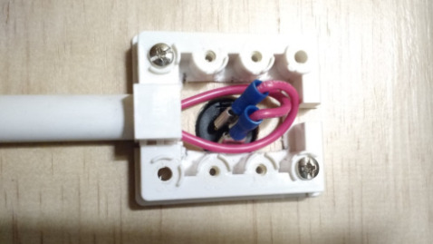 So, the wires for each were placed in a conduit on the reverse (in the top triple bunk), and I used one of those wall-mounted phone jack boxes (cheapest box-thing I could think of) was used to accommodate the extra depth needed for the round rocker switch terminals. Not super pretty, but works!