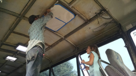 The end result looked pretty good, though. The foam should help to seal up any (tiny) leaks in the ceiling, added strength to the exterior aluminum skin, has a little dampening effect on the sound, and will hopefully keep some heat in/out.