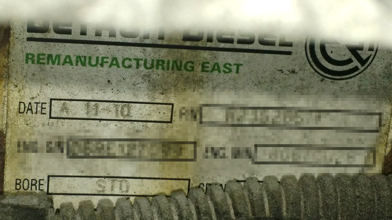 The engine was rebuilt in November 2010 (engine plate, shown above), so I knew it at least didn't have as many miles on it as the bus.
