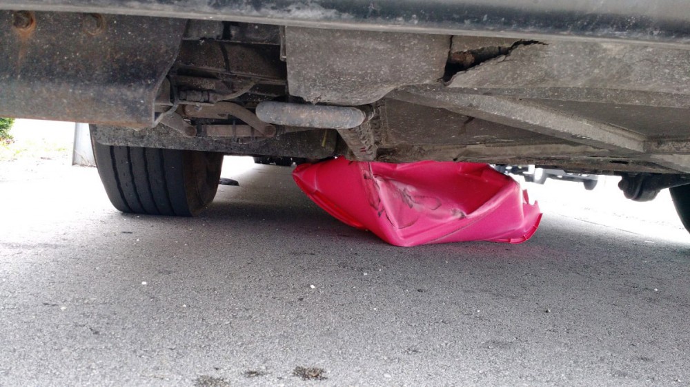 Not a whole lot of places to stop at this point, but I did manage to pull over and get it dislodged. After tossing it in, I crossing my fingers, and managed to merge as before.