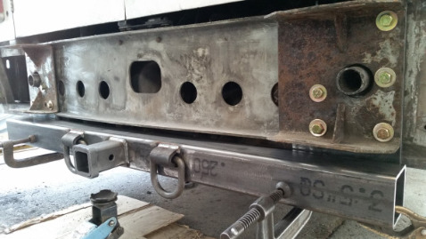 Once the bumper mounting plates were removed (behind the bumper), we had the hitch mounting plates cut, at a local shop with a plasma table, to fit the holes in the rear frame.