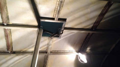 Holes in the ceiling also had to be cut (and reinforced) to support the air conditioners and fans that would eventually be placed on the roof. Thanks again, dad.