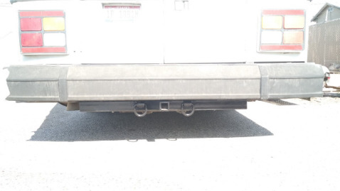 Thanks to some photos found on this site of towing hitch made to fit various MCI buses (that used to be available, but no longer is), and some local fabrication shops that saved us time creating the basic hitch bar and custom mounting plates, we were able to fashion them into the needed towing hitch. Eventually we planned to tow our old suburban behind the bus, as a get-around vehicle when desiring to go where the bus just wouldn't fit or, if it wasn't sensible to drive it.