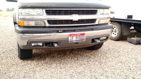 The vehicle we wanted to tow (a quarter ton Chevy Suburban) also had to be readied. To start, base plates had to be installed behind the bumper.