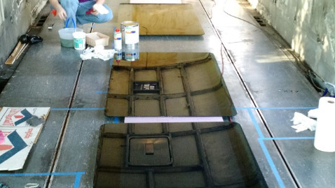We removed all the (side) windows from the bus, and cleaned each one individually. In order for them to be resealed well, the old gaskets and dried/sticky adhesive had to be removed from the aluminum frames. We used up most of a gallon of "Pro Strength" Goof Off (it's good stuff!).