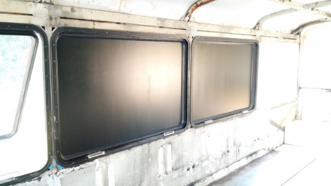 In most bus conversions, the windows are usually removed completely, and the remaining holes are skinned over with steel or aluminum plating. This apparently allows for better insulation. However, in our minds, if we did the same, we'd just end up with a BUS that's trying to look like an RV. Fine for most, I guess, but we sorta wanted our bus to still look like a bus (we just like the look of it, call us crazy).