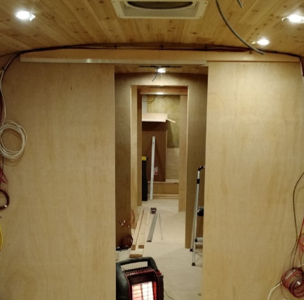 Initially, I naively thought, "Oh, we'll have this done in 3 or 4 months, and be on the road!" However, having never attempted something on this scale before, it was a very short-sighted assumption. One of the difficulties of doing one project as nice as you can (reasonably) do it is... it sets a benchmark for the rest of the projects you wish to do. When you spend a lot time making one thing nice, you sort of want to make the rest of it the same level of niceness. In the beginning, I pictured a more open floor plan (quicker to do). But the more I/we thought about it, and the individuals it would be home to for the next year or two, the more separate spaces made sense. For sanity's sake, each person really ought to be provided their own, dedicated space in the bus - a place to call their own. As well,